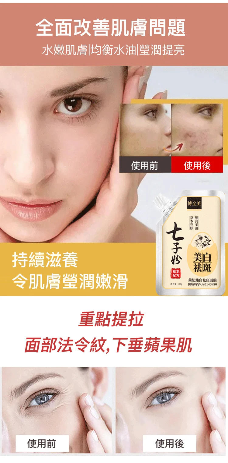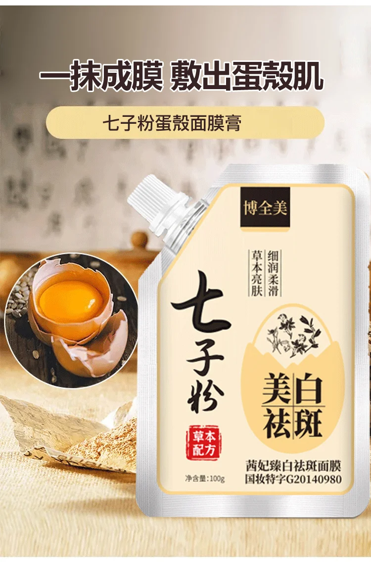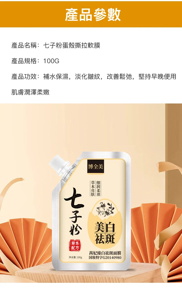 博全美七子粉蛋殼面膜膏、純中藥植珍珠軟膜粉塗抹泥膜軟面膜、草本茜妃臻白祛斑面膜,一抹成膜,呵護蛋殼肌,有效淡斑亮白去黃的水潤保濕草本軟膜,粉彈潤透亮塗抹式撕拉面膜。